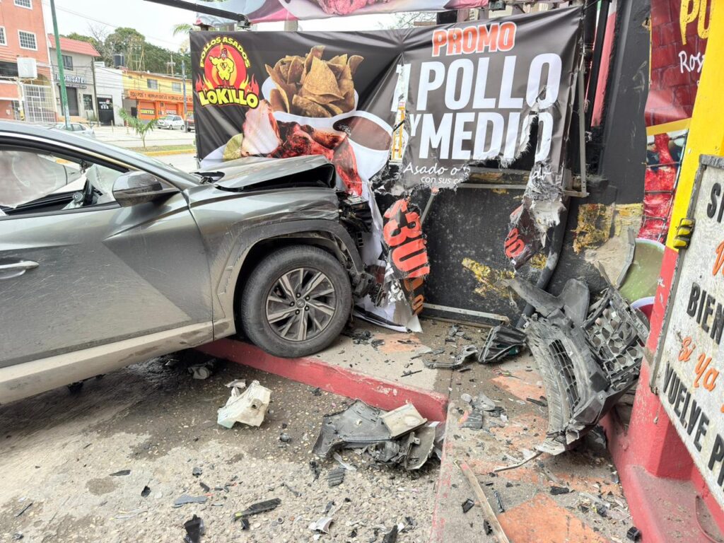 Camioneta impacta negocio de pollos tras choque en Madero