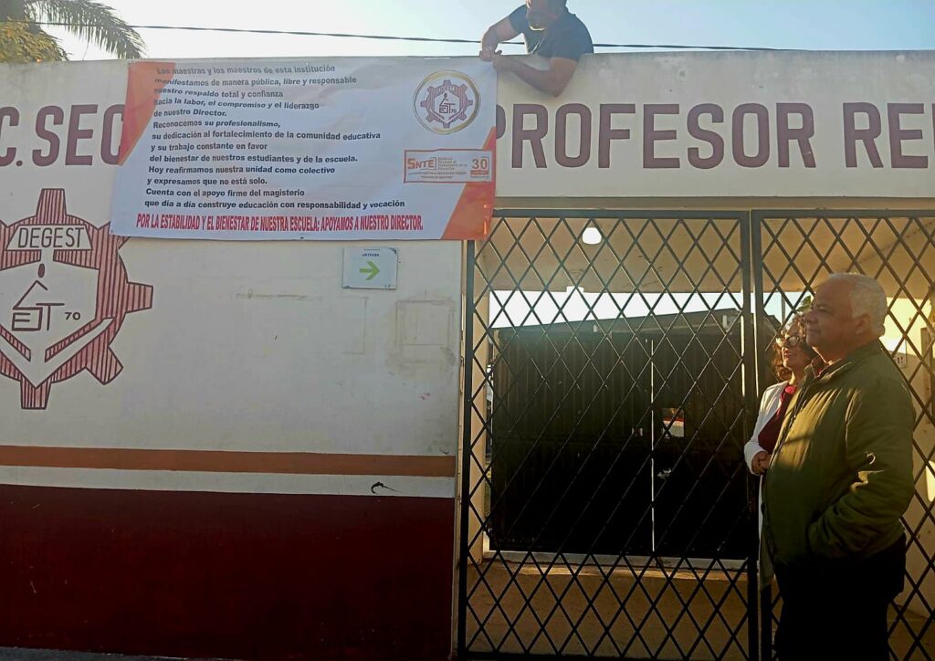 Maestros defienden a director de la Secundaria 70 de Altamira con lonas