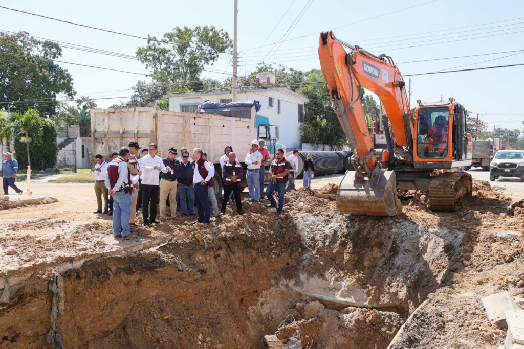 Durante su inspección, verificó el progreso en la sustitución de un colector de 60 pulgadas y la construcción de una madrina de 8 pulgadas, que abarca un total de 105 metros lineales, de los cuales aproximadamente 80 metros ya han sido renovados.