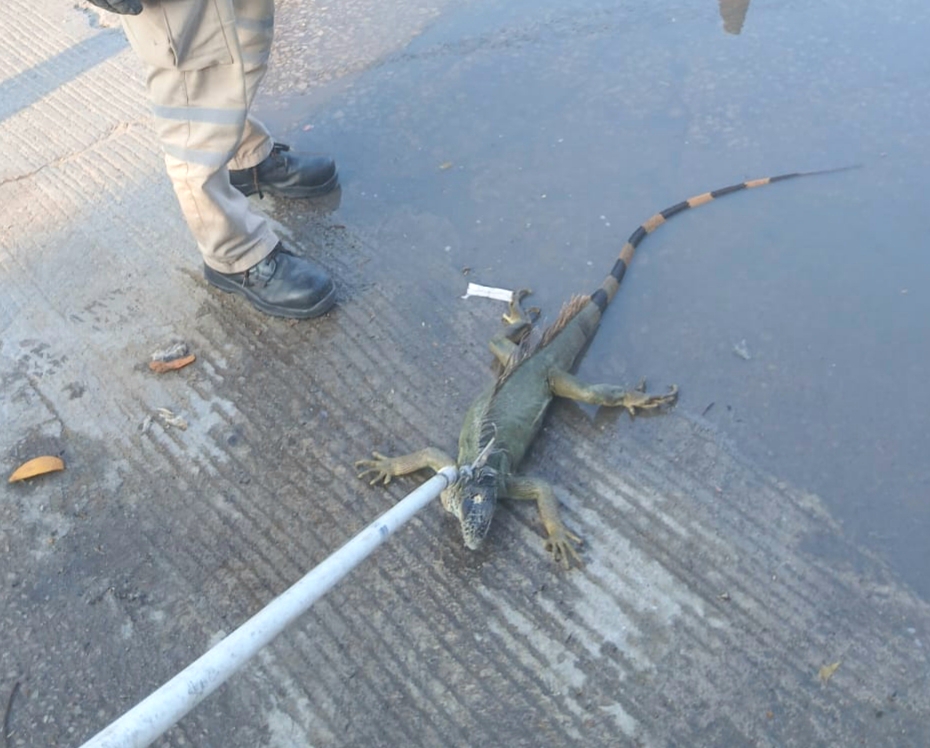 En el interior de un domicilio de la zona norte, fue encontrada una iguana, cuya presencia tomó por sorpresa a los moradores de la casa.